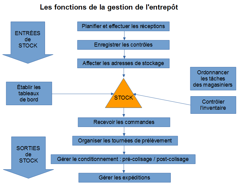 La gestion de l'entrepôt est au « service » de la gestion des stocks. Elle remplit les fonctions suivantes :